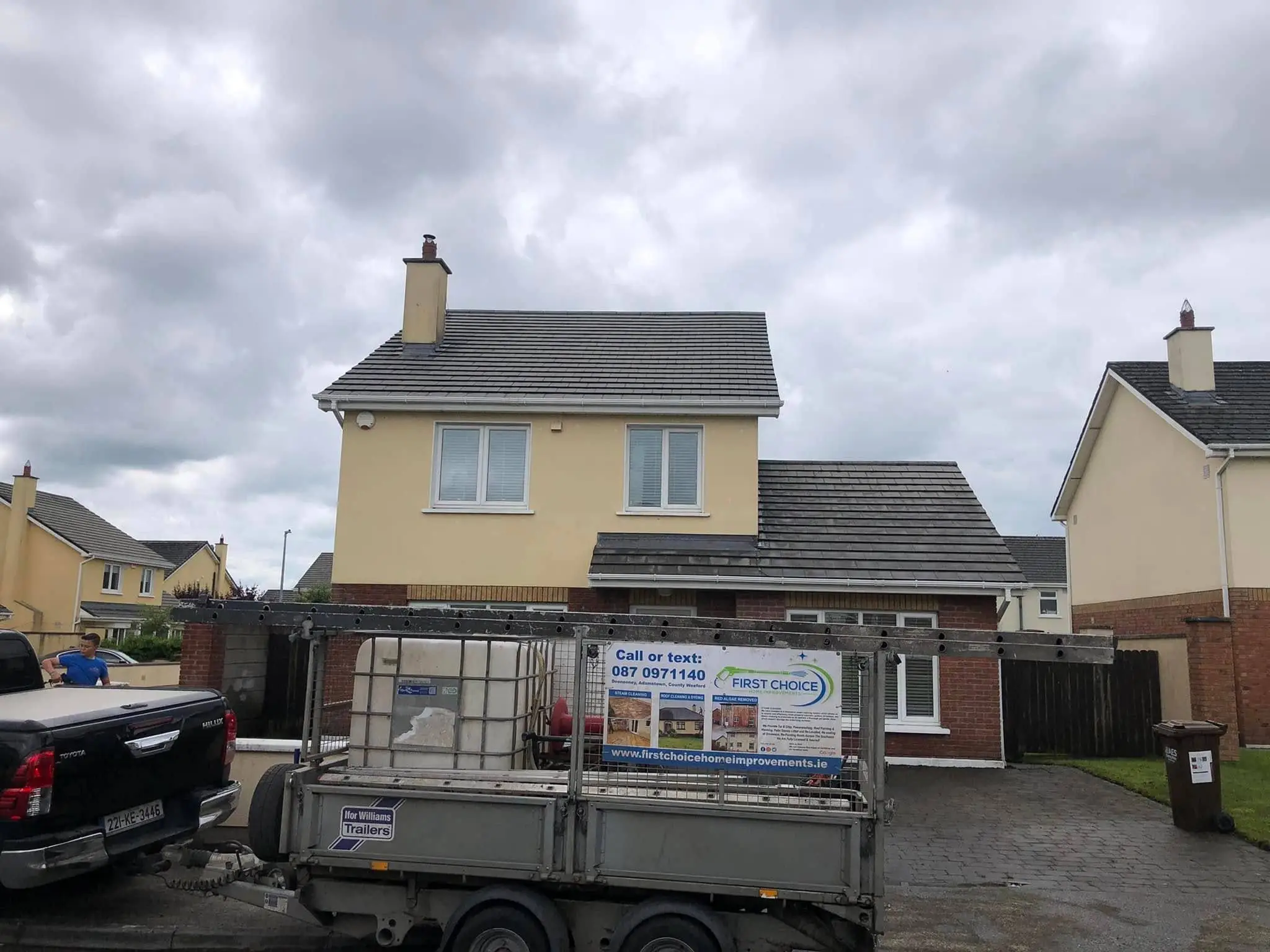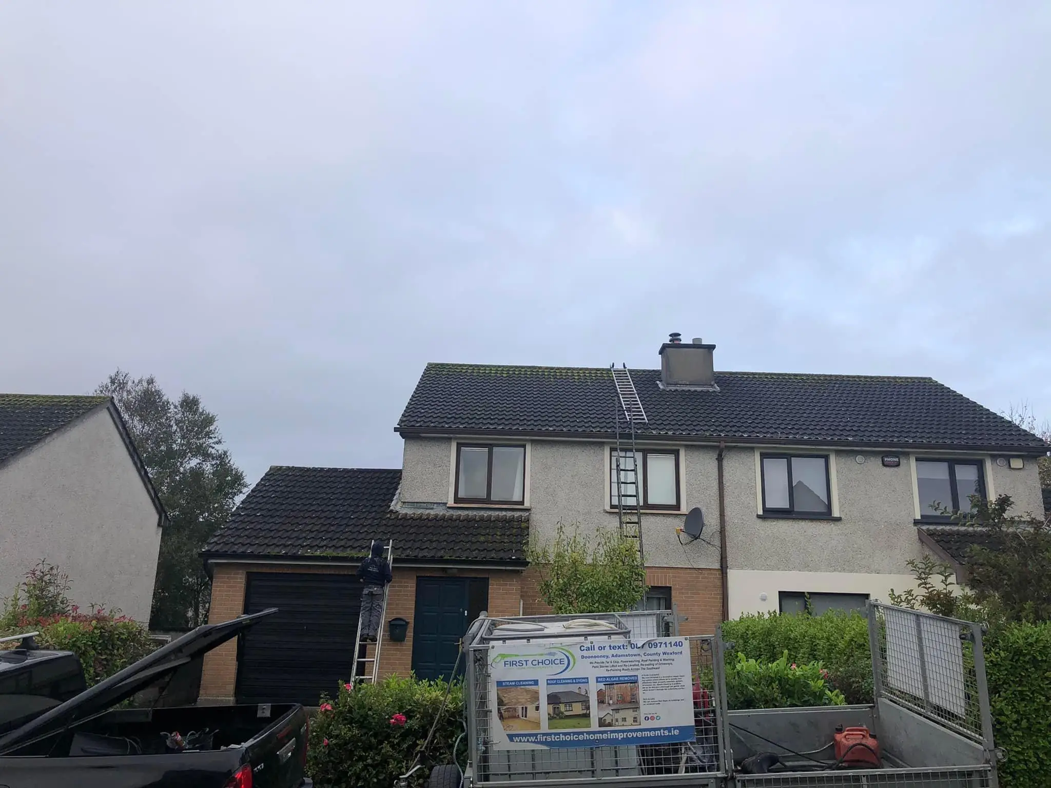 Welcome to our Completed Projects page! At First Choice Home Improvements, we take pride in showcasing the successful outcomes of our powerwashing, softwashing, exterior painting, exterior cleaning, roof repairs, gutter repairs, driveway repairs, driveway sealing, repointing roofs, and reslating roof projects in Leinster.